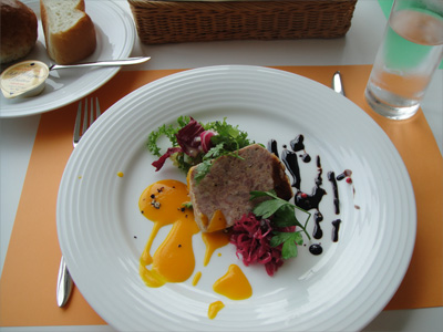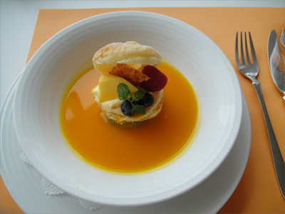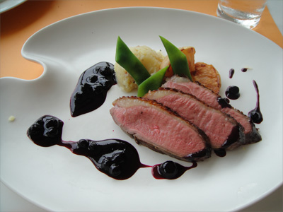 鴨肉のソテー カシスソース! お皿がパレットの形でかわいい。